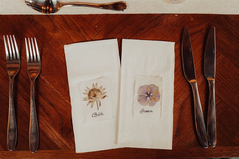 As soon as we decided to get married I knew instantly that I wanted Rachel to do our flowers, I have always admired her designs and colour palettes. Rachel was very conscientious and thorough in understanding the theme and style we wanted, but was able to elevate it so much further and add amazing detail with her extensive knowledge of flowers and presentation. She designed everything from the bouquet and buttonholes, to the table decorations, placings and wedding favours. We were so happy with how it all turned out, and our guests thought it all looked beautiful. The table placings were a particular hit and many were saved to be framed and hung at home. Rachel was such a pleasure to work with, and it made the day so much more special. I wish we could do it all again.